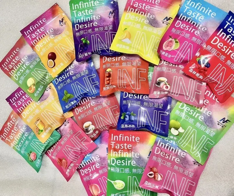 口味選擇:INF無限烟彈提供多種口味選擇,包括綠豆、西瓜、檸檬可樂、百香果等多種口味,滿足不同用戶的口味需求。